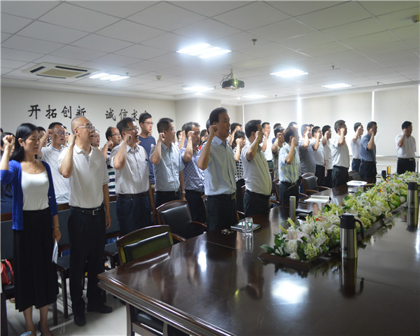 其次,集團公司機關一支部書記、綜合管理部經理祁紅軍同志帶領大家重溫入黨誓詞。全體黨員起立,右手握拳,高舉耳側,凝視黨旗,宣讀入黨誓詞,莊重神圣,擲地有聲。