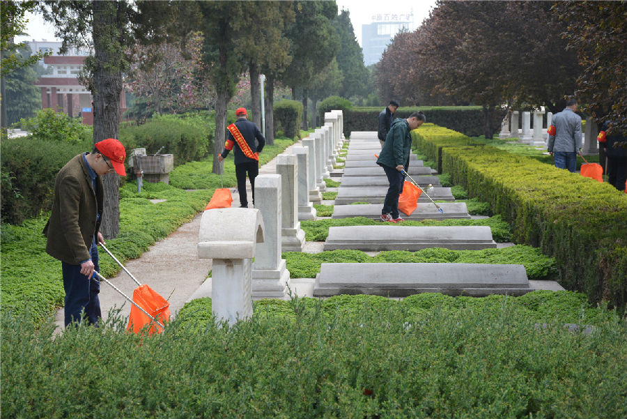 三、開展“倡議文明緬懷,減少廢棄污染”拾撿垃圾志愿服務(wù)活動(dòng)。緬懷先烈活動(dòng)結(jié)束后,市建投公司志愿者們?cè)诹沂苛陥@內(nèi)開展“倡議文明緬懷,減少廢棄污染”拾撿垃圾志愿服務(wù)活動(dòng)。每位志愿者都手持垃圾鉗,認(rèn)真將散落在紀(jì)念碑前以及隱藏在雜草中的廢棄鮮花、飲料瓶、紙張等垃圾拾撿起來放入提前準(zhǔn)備好的垃圾袋中。活動(dòng)持續(xù)一個(gè)小時(shí),志愿者們?cè)诩赖煜攘业耐瑫r(shí)以自己的實(shí)際行動(dòng)表達(dá)崇敬之情,并倡導(dǎo)以獻(xiàn)一束花、敬一杯酒、植一棵樹、清掃墓碑等方式寄托哀思,將祭拜逝者的傳統(tǒng)習(xí)俗以更加環(huán)保、健康、安全、文明的方式表達(dá),營造文明祭祀的良好氛圍。